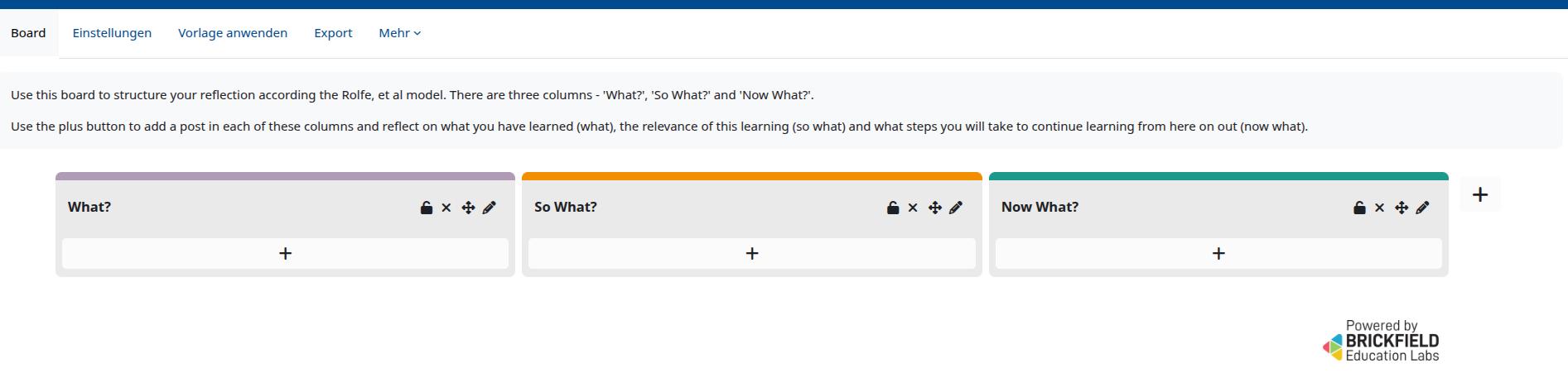 Diese Aktivität erlaubt es Teilnehmer/innen, zu diskutieren und mit Hilfe eines Post-it-Boards Beiträge zu erstellen, die Text, Bilder, URL-Links oder eingebettete Videos enthalten. Dozenten und Kursbetreuer können Boards unterschiedlich konfigurieren, hierfür stehen eine handvoll vorgefertigte Templates zur Verfügung, zum Beispiel: EXIT-Tickets, Ice breakers, Projektboards wie KANBAN oder Ticketbasiert, sowie ein paar Reflektions und Didaktikstandards. Suchen Sie sich einfach ein passendes aus und erkunden Sie was alles möglich ist. Es können auch frei von den Board-Vorlagen eigene Einstellungen verwendet werden. Diese Aktivität bietet auch einen Gruppen oder Einzelmodus an. Ihre Teilnehmer können also gemeinsam an einem Board informationen teilen, oder Sie können mittels Einzelansicht auch ein Board pro Teilnehmer betrachten und bewerten.