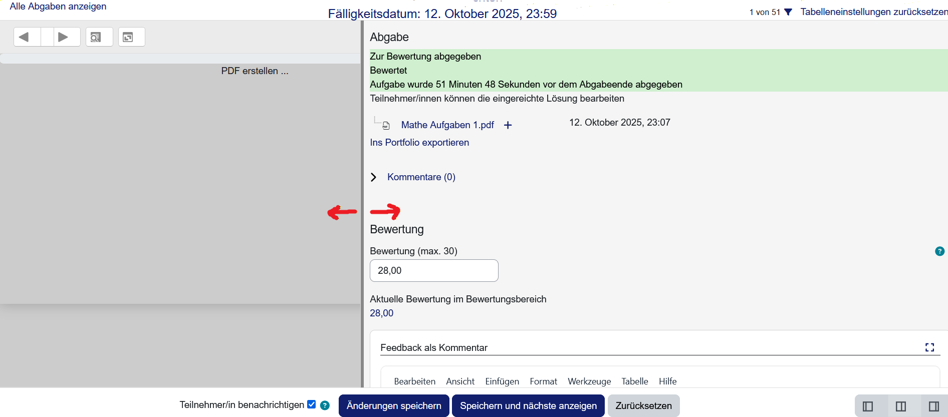 In der Bewertungsansicht lassen sich nun die zweigeteilten Spalten des Fensters in der Größe variieren.