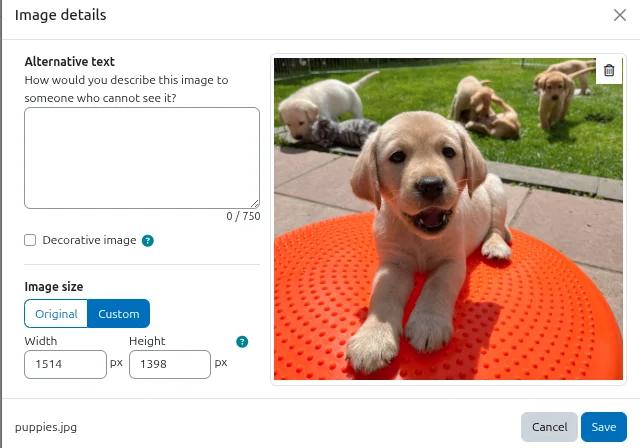 Für den primären Editor TinyMCE gibt es kleinere optische Verbesserungen. Ein Beispiel: Das Dialogfenster für Bild- oder Medien-Upload hat ein besser lesbares Layout bekommen.