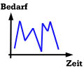 Von stark schwankendem Bedarf spricht man, wenn relativ große und häufige Abweichungen nach oben oder nach unten vom Mittelwert vorhanden sind. Die Bedarfsspitzen sollten um mehr als 100% vom Mittelwert abweichen. Zudem darf kein saisonaler Einfluß erkennbar sein. Die Extremwerte folgen willkürlich aufeinander.