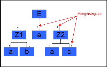 c geht in Z2 1 mal ein, Z2 geht in E 2 mal ein, so dass c insgesamt 2 mal in E eingeht. b geht insgesamt 4 mal in E ein. Wie oft geht a in E ein?